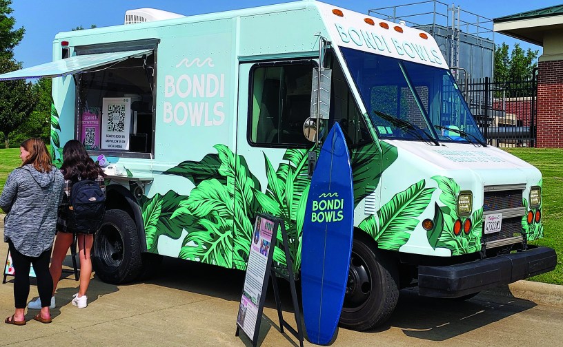 I tried several different food trucks that came to the NWACC Bentonville campus. The food trucks appeared next to the Bogle Plaza on different dates and at different times. I have tried the Takashimura Hibachi, Bondi Bowl, and Rockin’ Rackley’s food trucks.